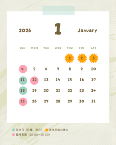 サロンの営業開始は1月4日(日)からとなります。